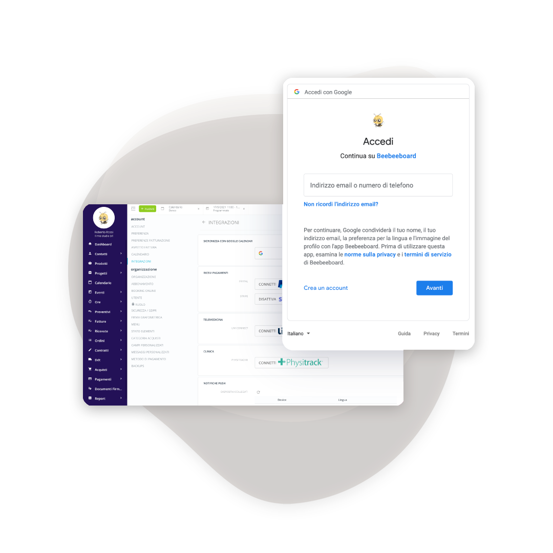 Connect each operator's calendar to their Google Calendar. Sync is automatic and two-way: create an appointment on Google and it appears on Beebeebusiness, and vice versa. Perfect for those who frequently work away from the office.