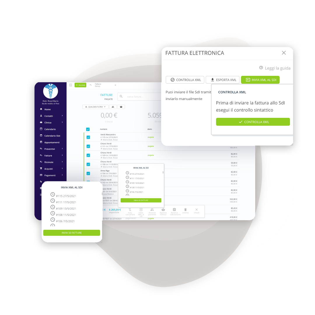 Send immediately after issuance or collect monthly/quarterly invoices and send them all in one go. The system automatically checks their validity before sending. SdI notifications appear directly on the platform as soon as they arrive.
