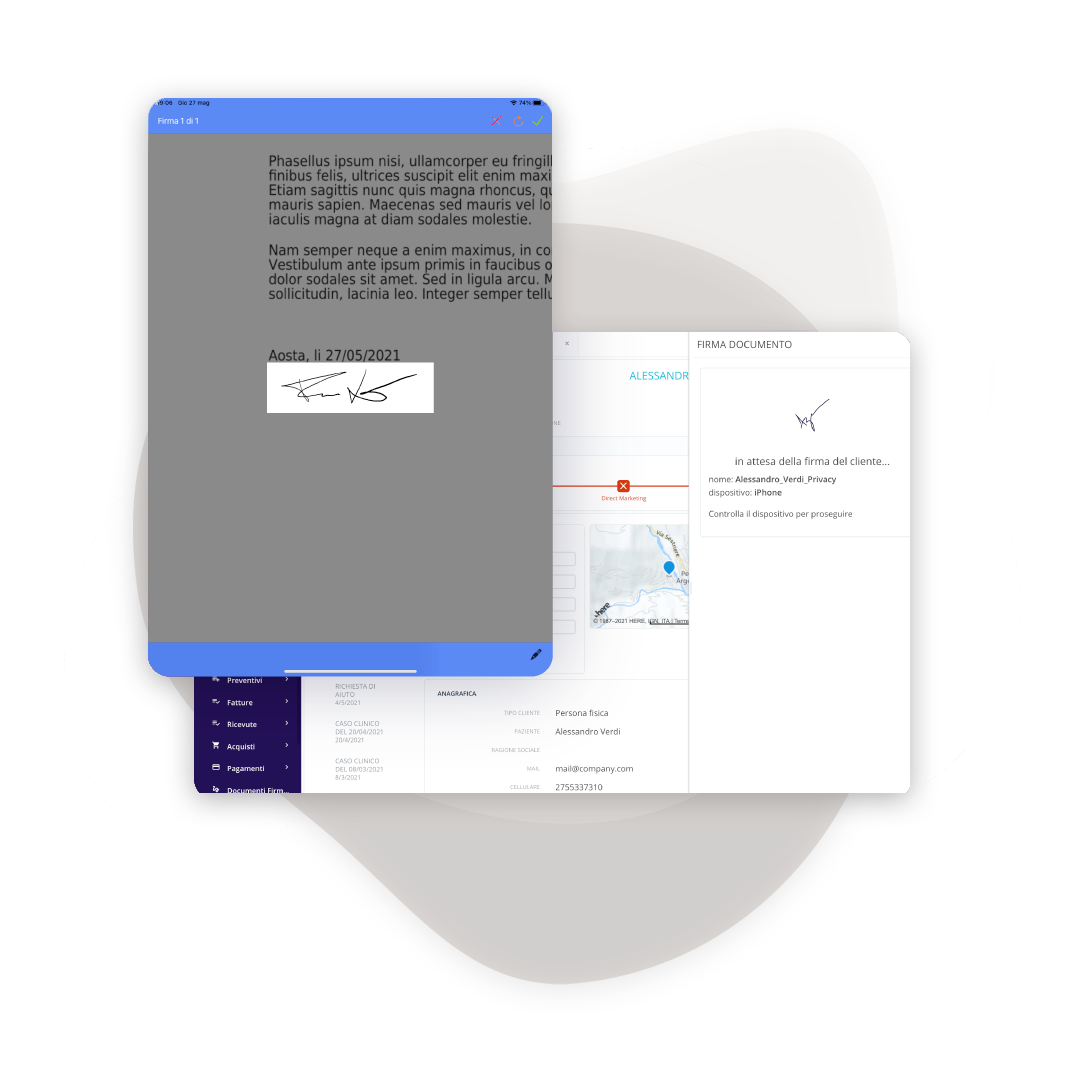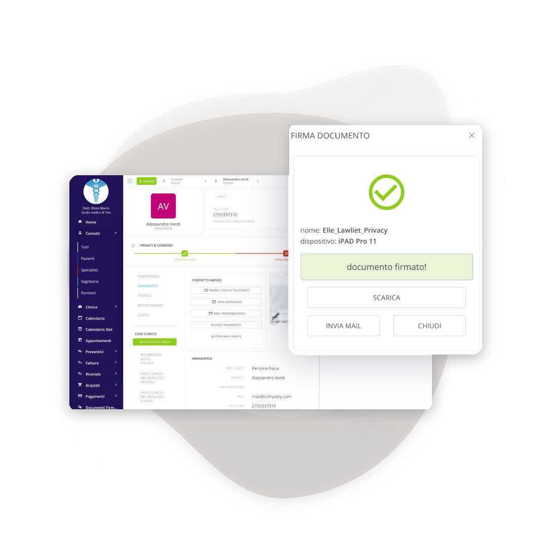 Libera spazio eliminando faldoni cartacei. Con la Firma Elettronica Avanzata (FEA) integrata nel gestionale, firmi documenti su tablet con piena validità legale. Scarica l’app gratuita e digitalizza il tuo studio.