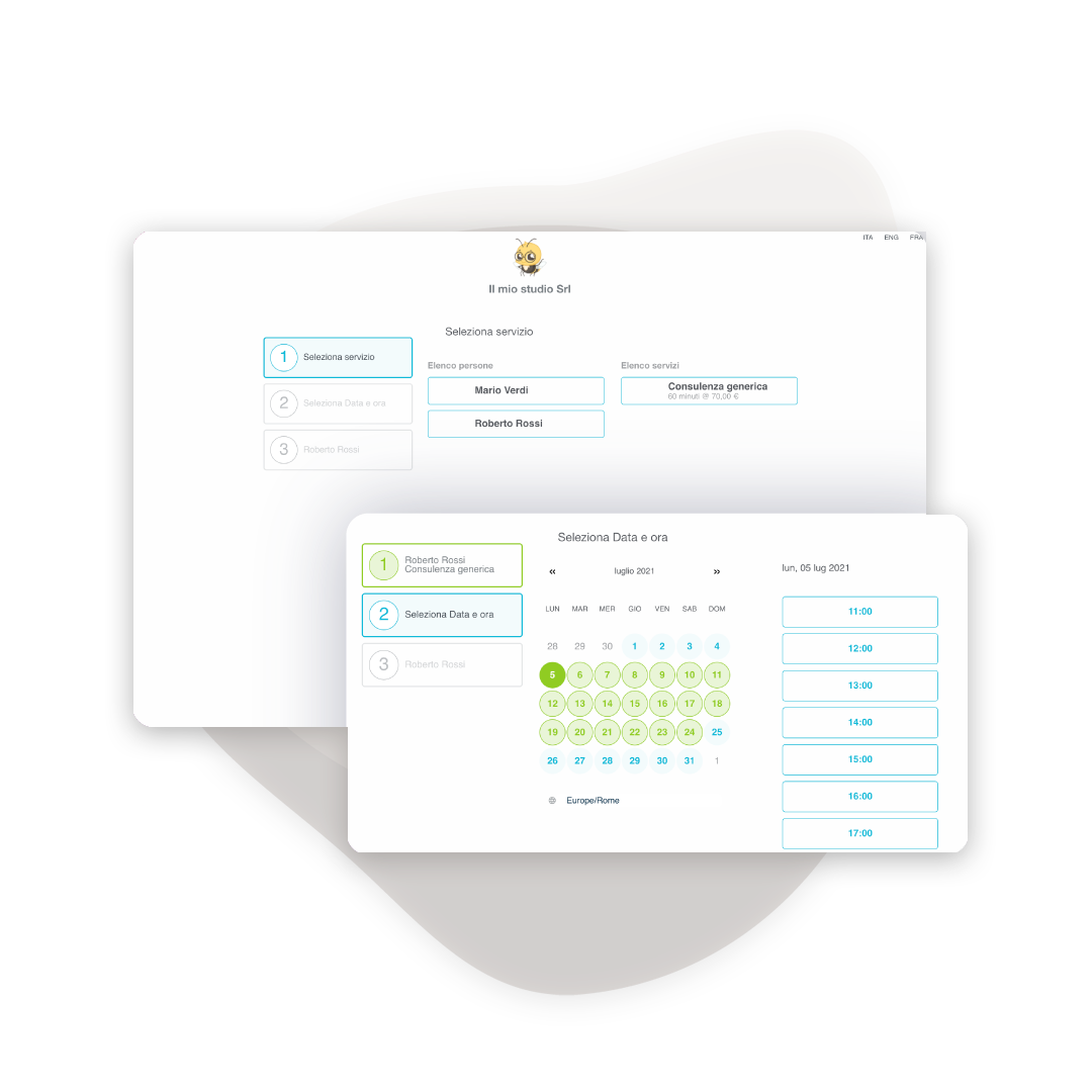 Beebeebusiness è il software gestionale cloud che integra booking online, agenda appuntamenti e fatturazione elettronica. I clienti prenotano online, pagano subito e tu gestisci tutto da un’unica piattaforma. Collegalo al sito o ai social.