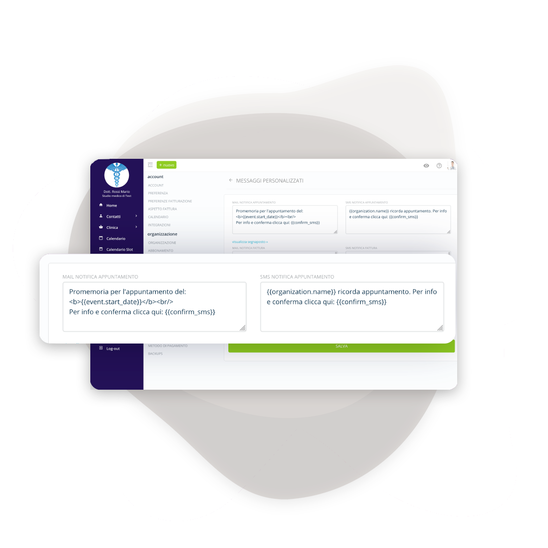 Scrivi testi personalizzati per email e SMS che rispecchiano la tua identità. Aggiungi informazioni utili, istruzioni o note particolari per ogni tipo di appuntamento.