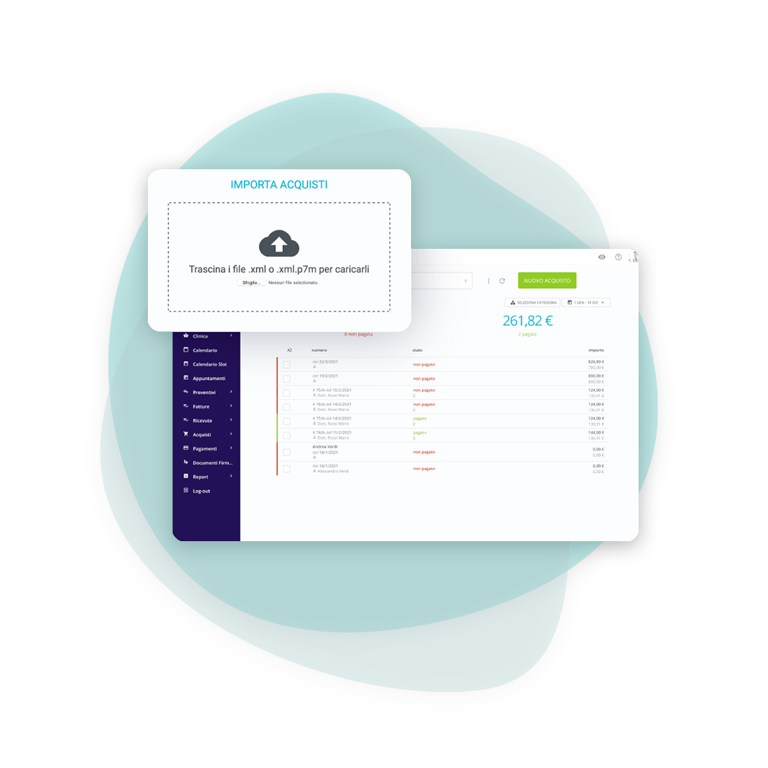 Le fatture elettroniche passive vengono caricate in piattaforma e collegate alla scheda fornitore, con file XML disponibile sull’acquisto. Così trovi tutto in un unico punto e puoi tenere aggiornate spese e contabilità.