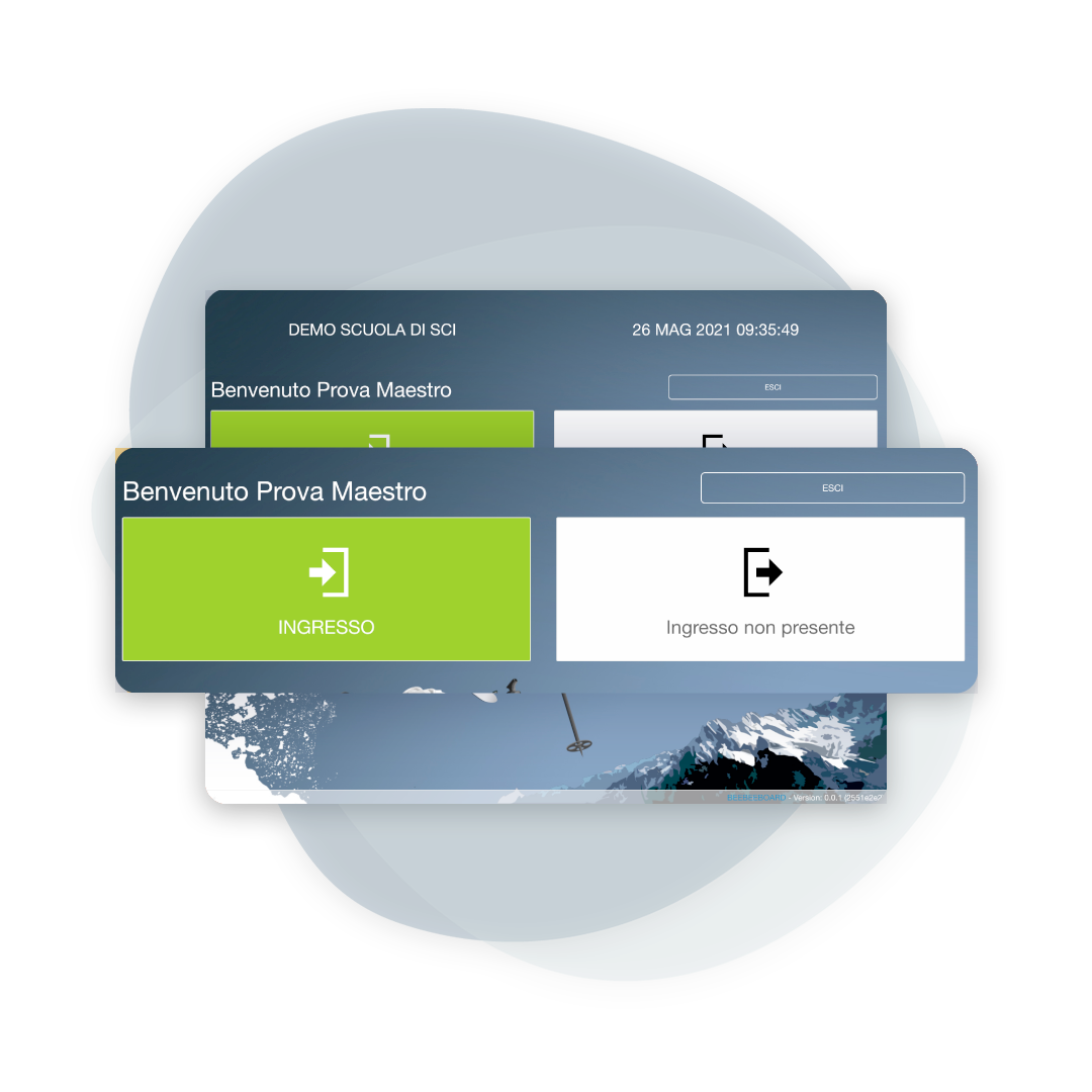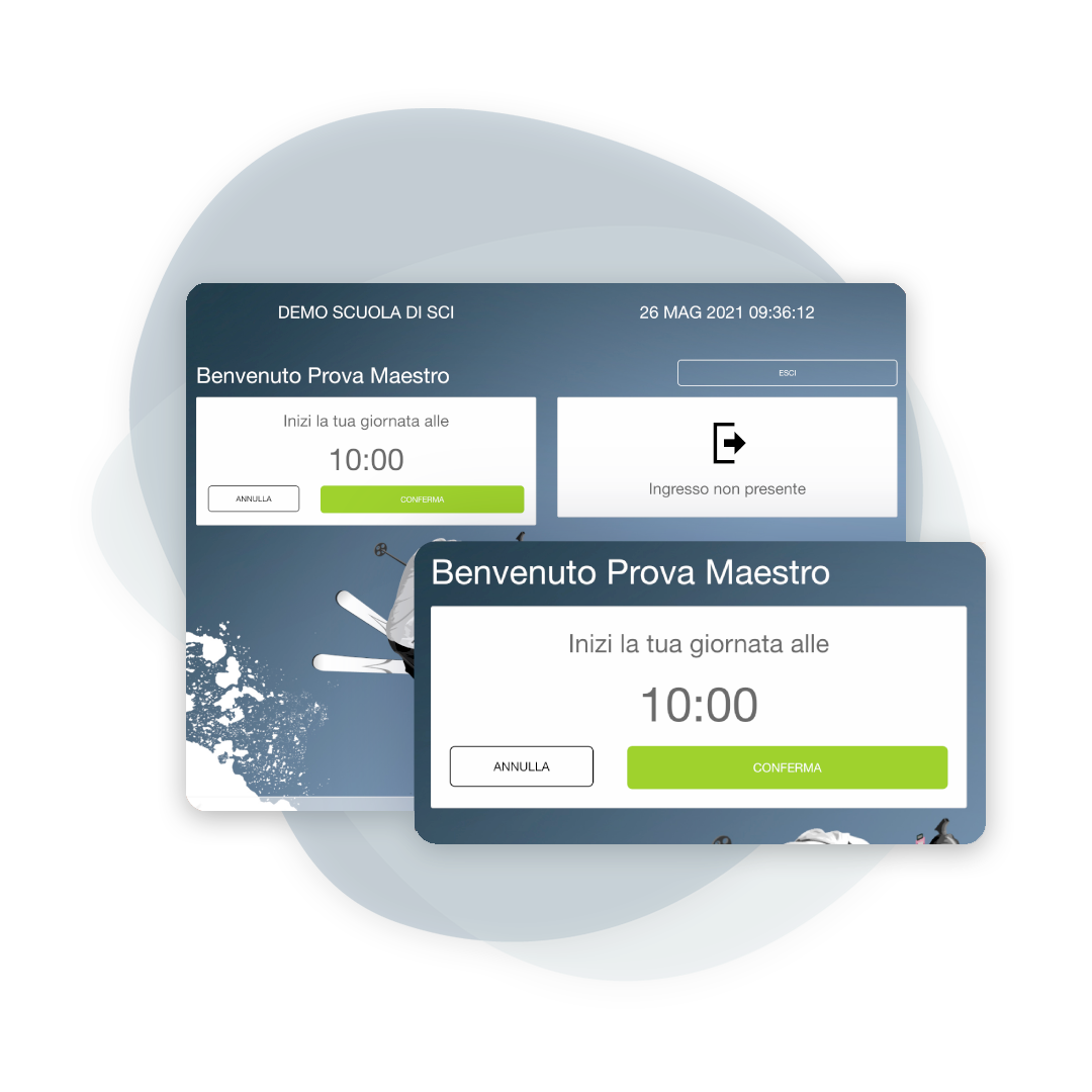 The instructor identifies himself by holding his season pass near the reader: he is immediately recognized and can choose the action to record (Entry or Exit) on the display. The receptionist sees in real time who is present and can work without phone calls and "voice" checks.