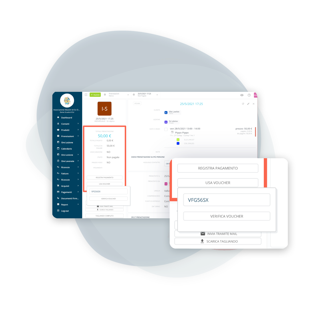 The recipient presents the voucher (email or print), and the office checks its validity and status. The voucher can be used as credit for private lessons, as a discount on a specific product, or to cover part of the cost of group lessons and courses, according to the rules you decide.